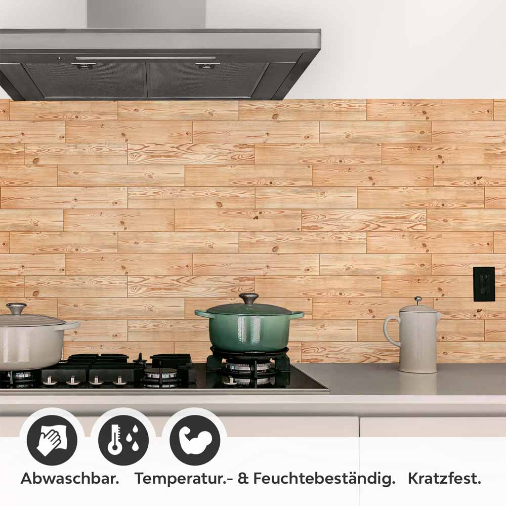 Die Küchenrückwand Folie Lärche Holzoptik bringt die faszinierende Ästhetik von Lärchenholz direkt in Ihre Küche. Die markante Holzmaserung und die natürlichen Farbtöne sorgen für ein elegantes und gleichzeitig wohnliches Flair.