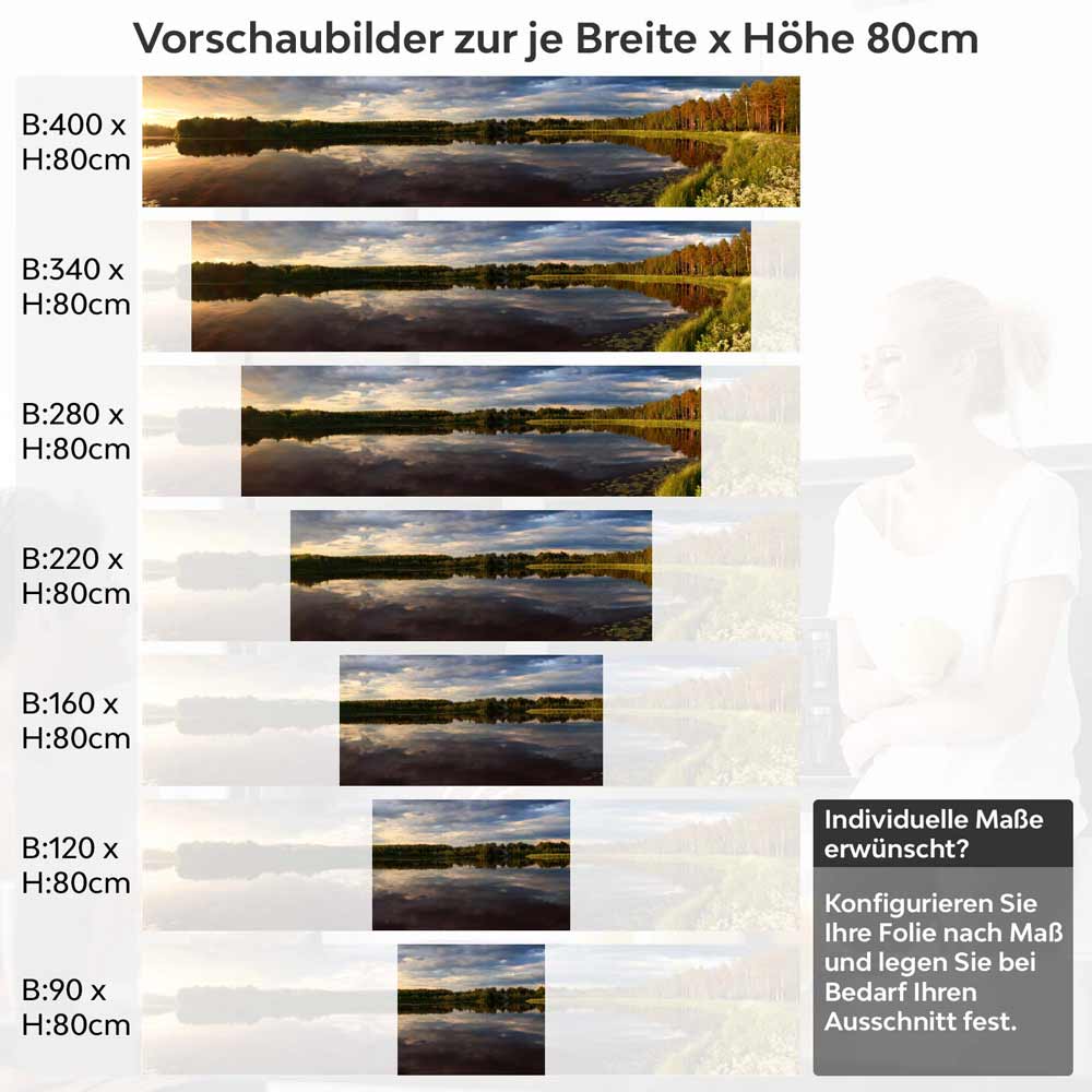 Die liebevoll gestalteten Details machen diese Rückwand zu einem Kunstwerk. Vom sanften Schimmer des Wassers bis hin zu den kräftigen Farben der Bäume - jede Nuance wurde so eingefangen, dass Sie sich fühlen, als stünden Sie mitten in der Natur. Diese Kulisse bringt nicht nur Ruhe, sondern auch eine beeindruckende Ästhetik in Ihre Küche.
