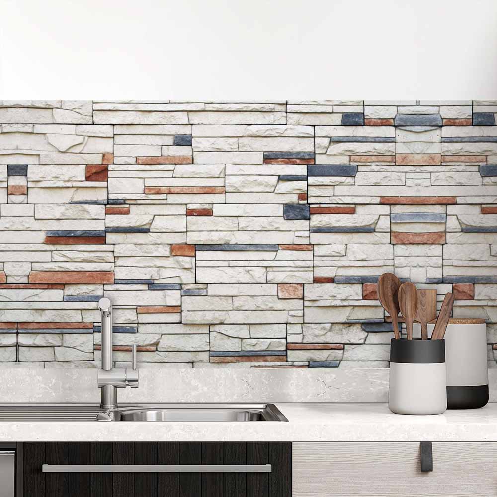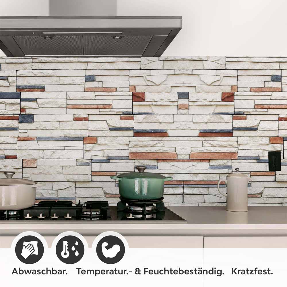 Küchenrückwand Folie Naturstein Look - Rustikal trifft Farbe