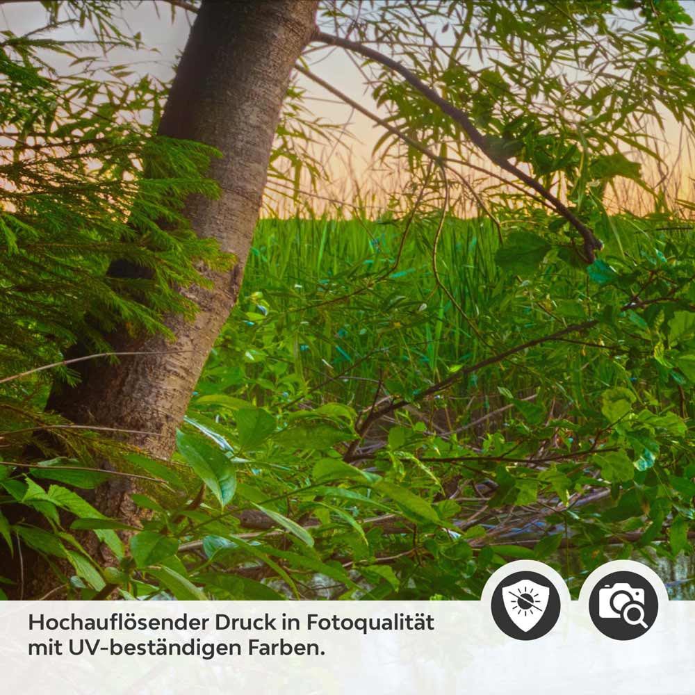 Die sanften Farben des Himmels und die Spiegelung im stillen Wasser schaffen eine beruhigende Atmosphäre. Sie erinnert an laue Sommerabende und inspirierende Momente in der Natur. Diese Rückwand wird Ihre Küche in einen Ort der Entspannung verwandeln, an dem sich der Alltag leichter anfühlt.