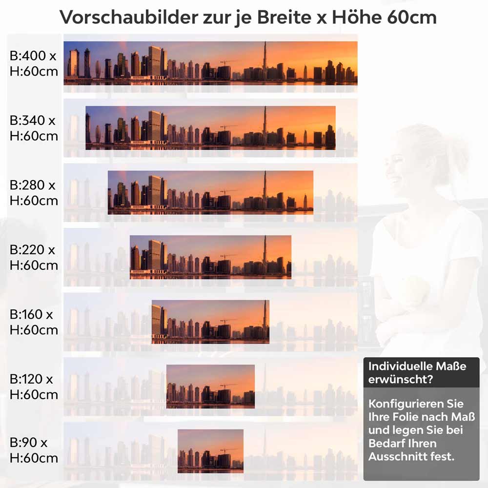 Eingehüllt in das warme Licht des Morgens, bringt die Küchenrückwand Folie Skylines im Morgenrot einen Hauch von Metropolencharme in Ihre Küche. Die sanften Farben des Sonnenaufgangs machen jedes Frühstück zu einem besonderen Erlebnis.