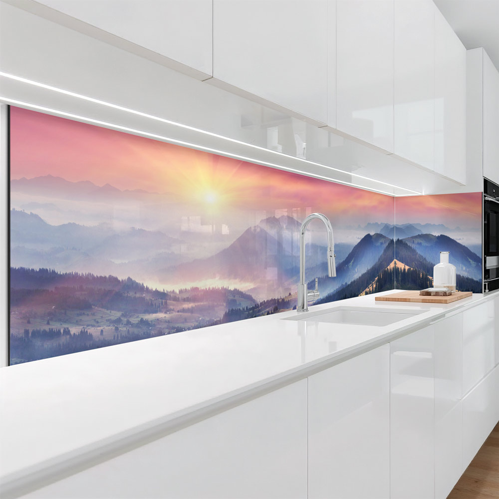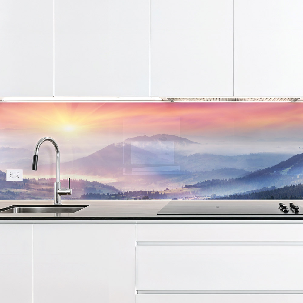 Küchenrückwand Platte Morgentlicher Bergblick im Nebel