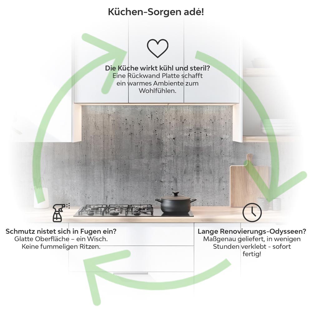 Küchenrückwand Platte Roher Beton-Look Produktdetailbild 1: Küchen-Sorgen ade!