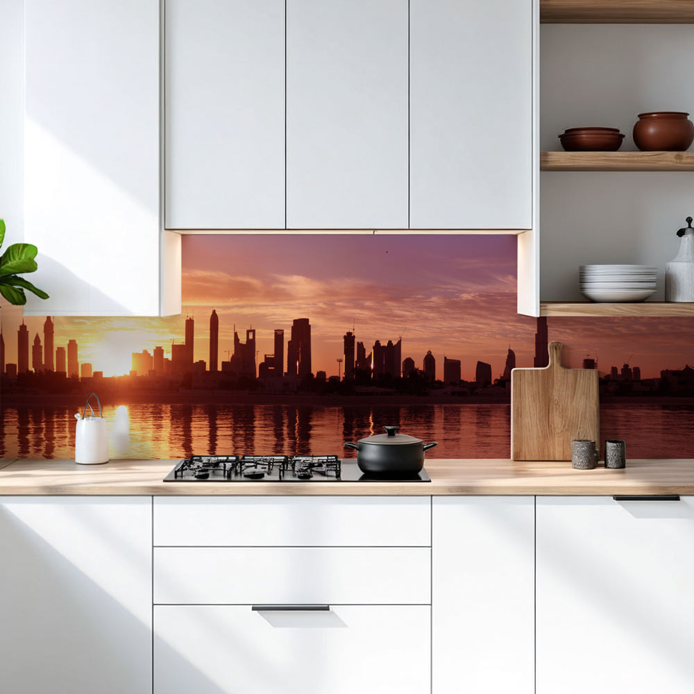 Küchenrückwand Platte Dubais Silhouette im Glanz der Dämmerung