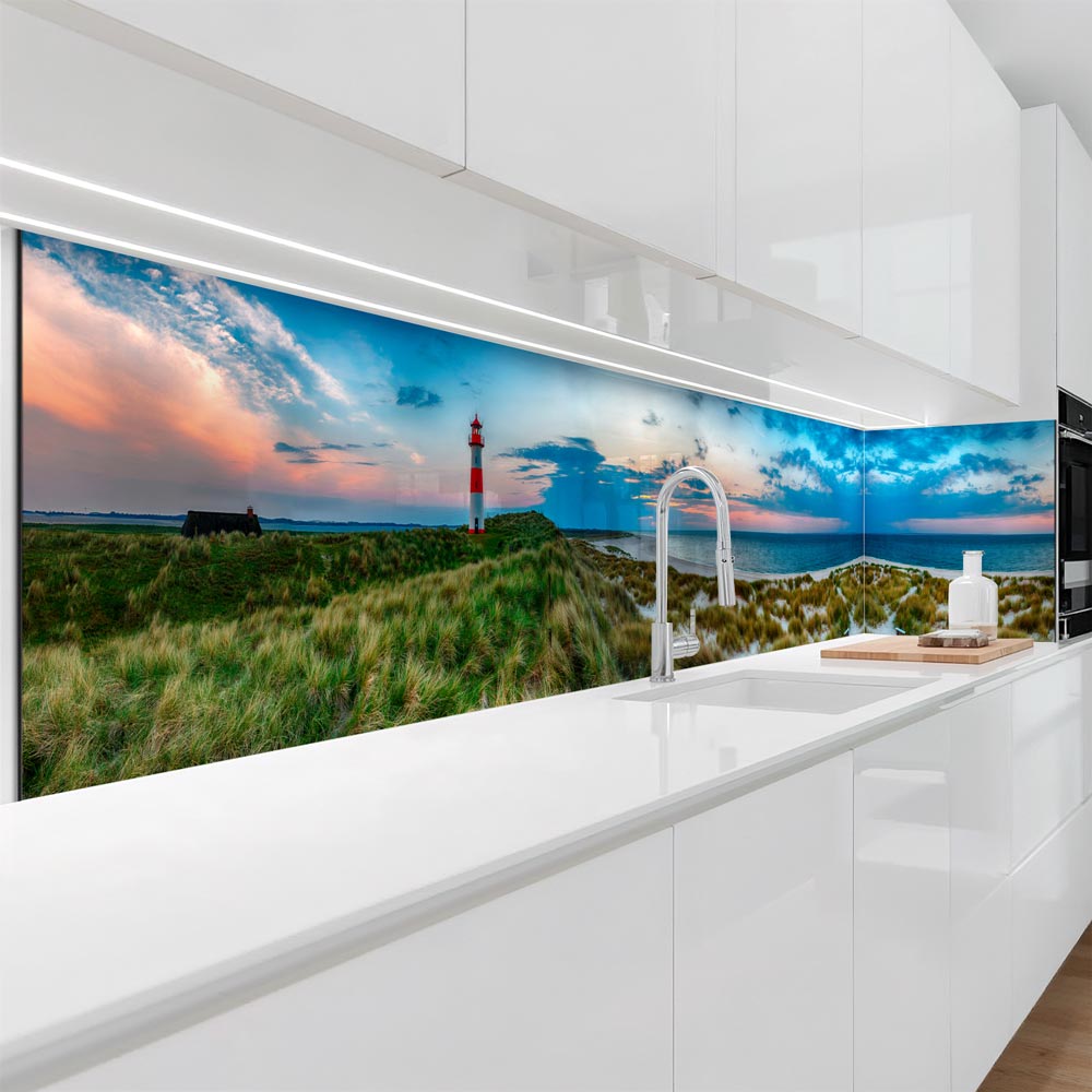 Küchenrückwand Platte Dünen, Leuchtturm & Meer