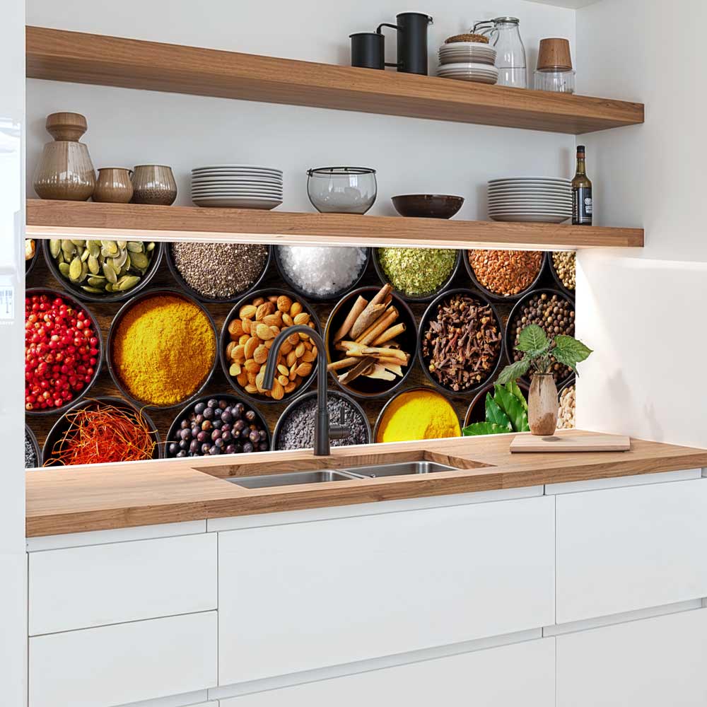 Küchenrückwand Platte Gewürz‑Bowls mit Nüssen & Samen