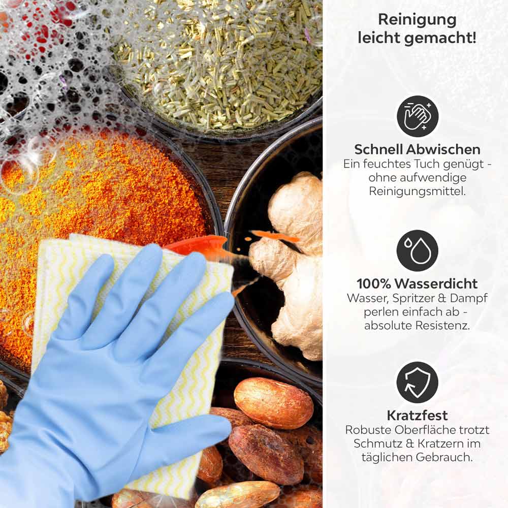 Mit der Küchenrückwand Klebefolie setzen Sie ein Zeichen für zeitgemäßes Design. Ihre langlebige Qualität und einfache Pflege machen sie zur idealen Wahl für stilvolle und funktionale Küchenlösungen.