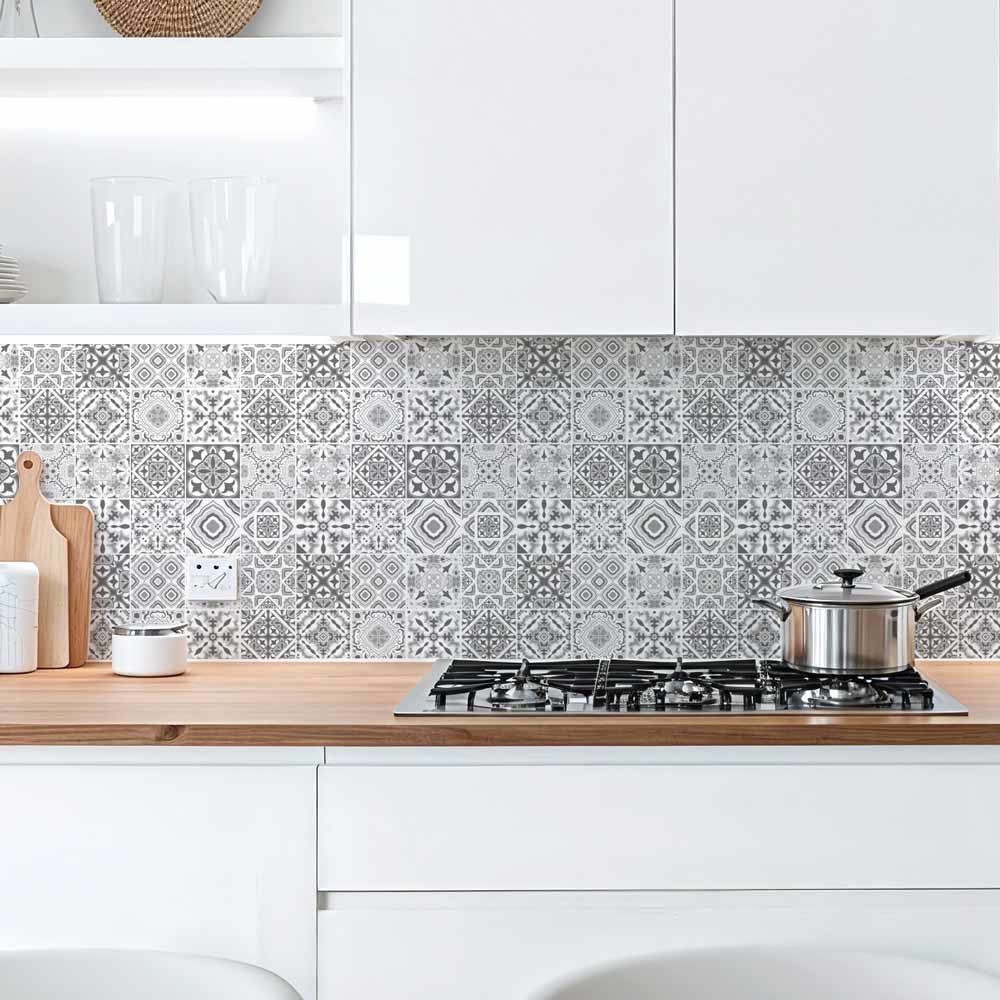 Küchenrückwand Platte Graue Kacheloptik im Azulejo‑Muster