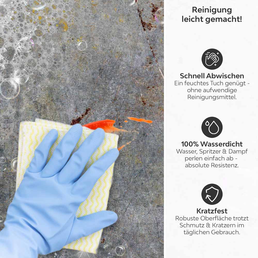 Mit der Küchenrückwand Klebefolie setzen Sie ein Zeichen für zeitgemäßes Design. Ihre langlebige Qualität und einfache Pflege machen sie zur idealen Wahl für stilvolle und funktionale Küchenlösungen.