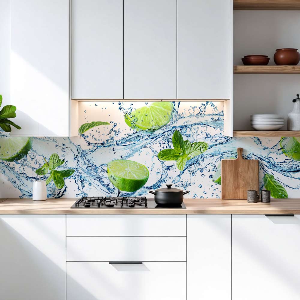 Küchenrückwand Platte Spritzige Limetten & Minzen