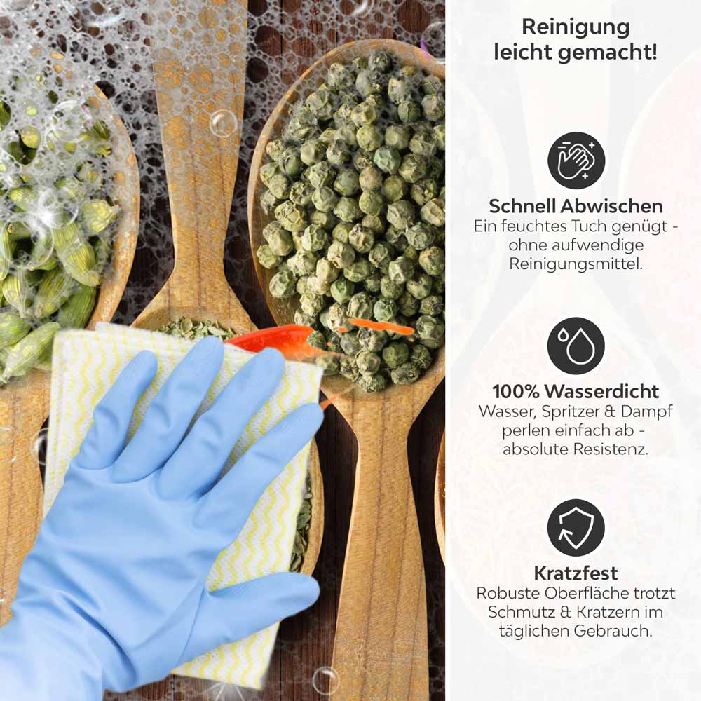 Mit der Küchenrückwand Klebefolie setzen Sie ein Zeichen für zeitgemäßes Design. Ihre langlebige Qualität und einfache Pflege machen sie zur idealen Wahl für stilvolle und funktionale Küchenlösungen.