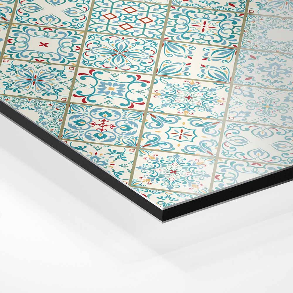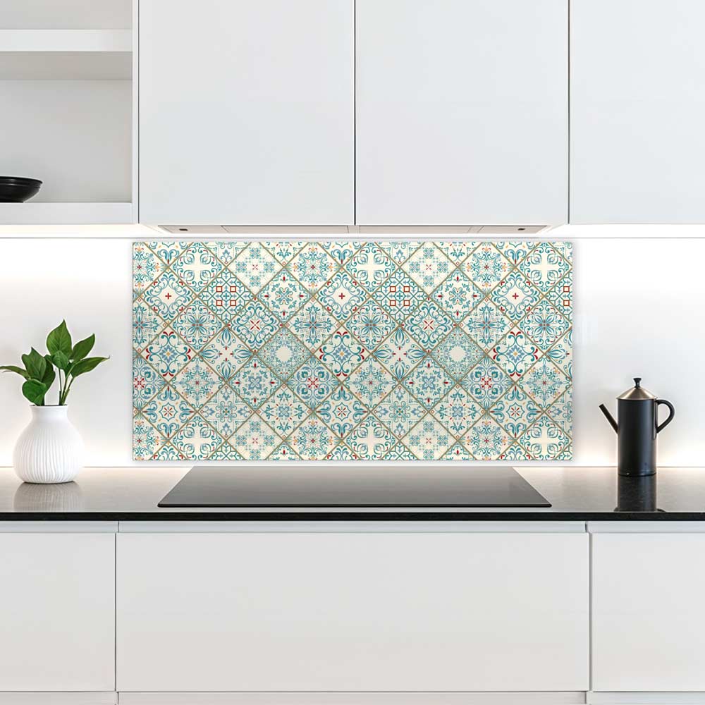 Küchenrückwand Platte Mediterrane Diamantmuster in Türkis & Rot