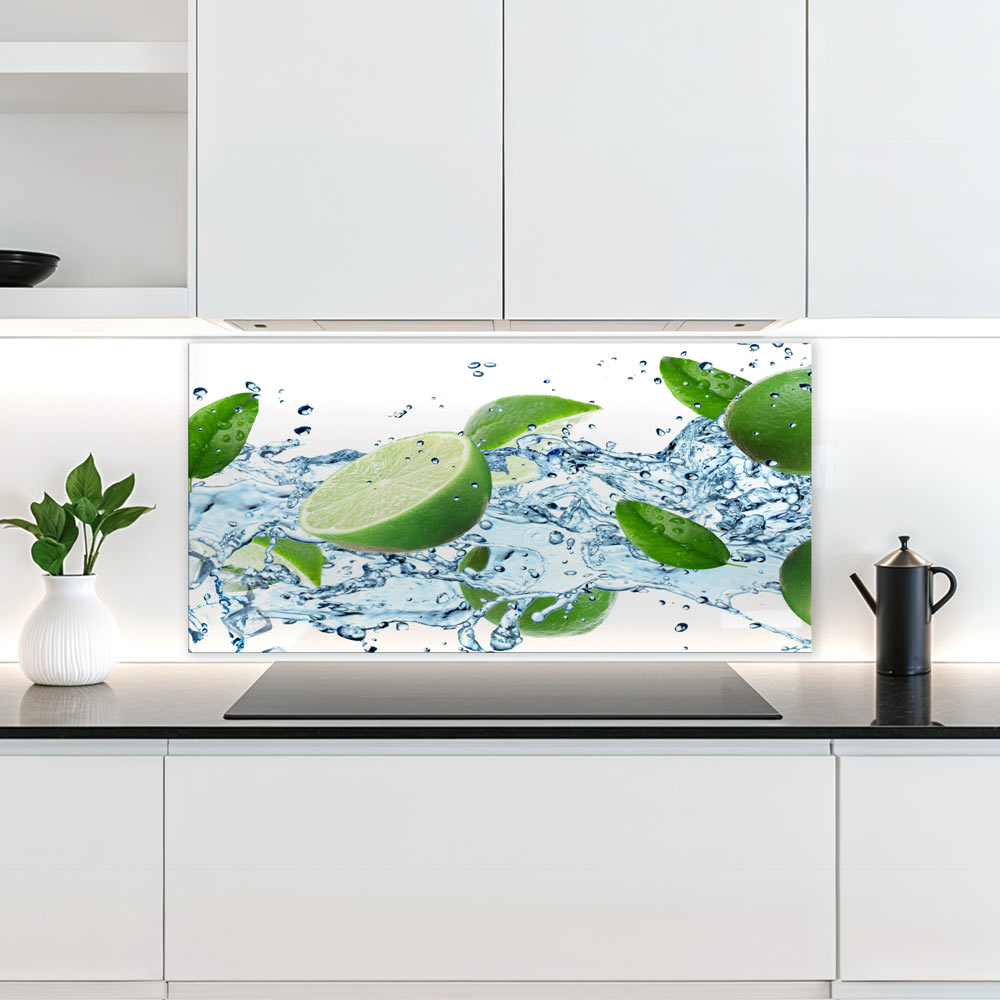 Küchenrückwand Platte Spritzige Limetten & Eiswürfel