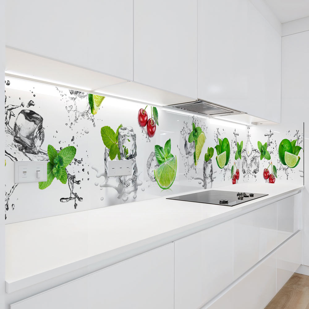 Küchenrückwand Platte Spritzige Limetten & Kirschen