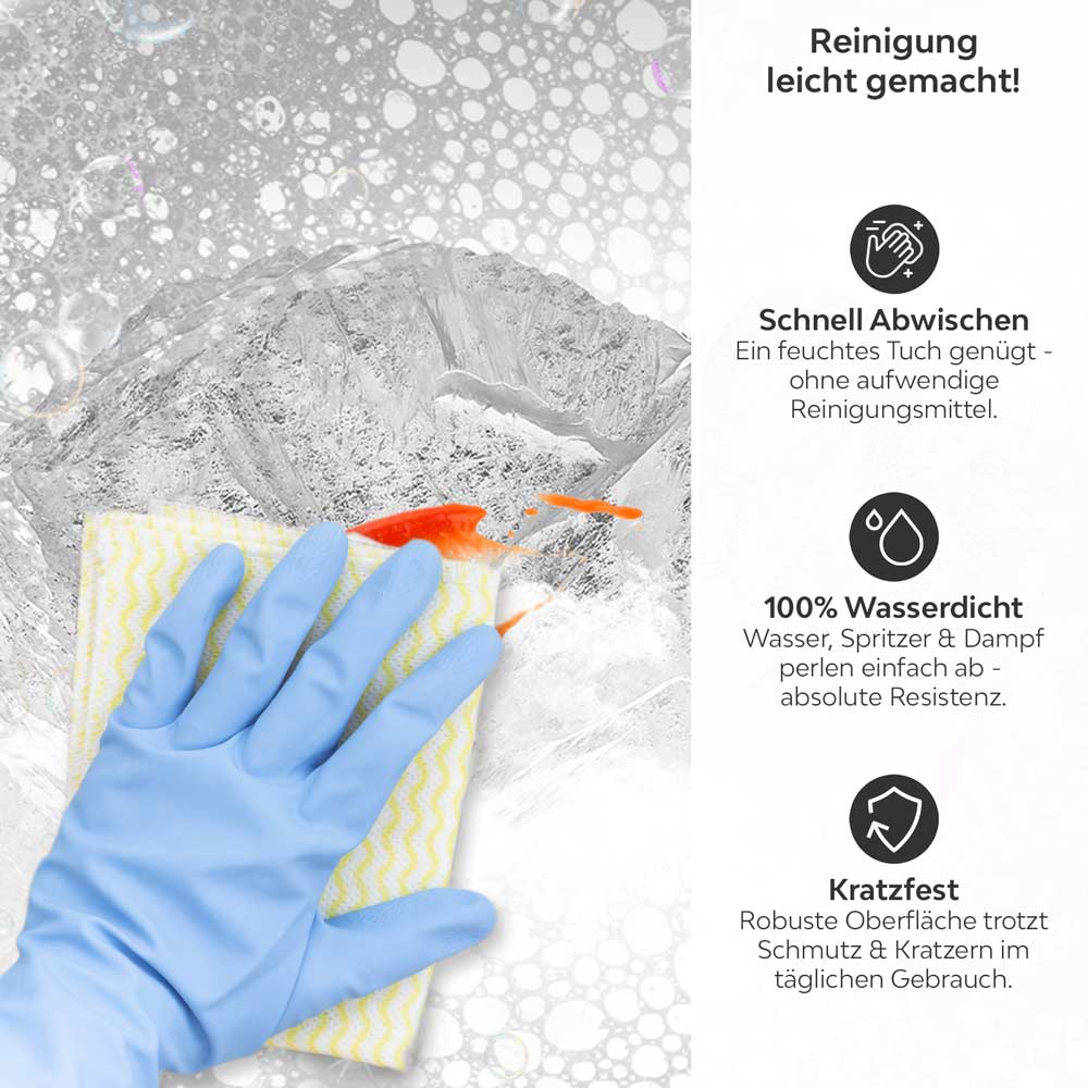 Mit der Küchenrückwand Klebefolie setzen Sie ein Zeichen für zeitgemäßes Design. Ihre langlebige Qualität und einfache Pflege machen sie zur idealen Wahl für stilvolle und funktionale Küchenlösungen.