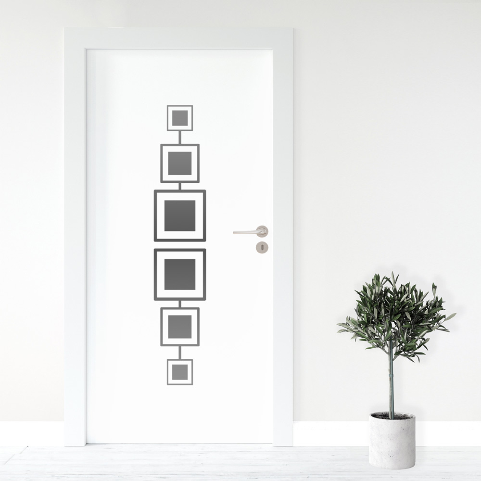 Setzen Sie mit der Türfolie Altmodische Quadrate auf ein stilvolles Design, das klassische Geometrie mit moderner Eleganz verbindet. Die harmonisch angeordneten Quadrate in verschiedenen Größen verlaufen vertikal und erzeugen eine ruhige, aber ausdrucksstarke Optik. Der dezente Farbverlauf sorgt für zusätzliche Tiefe und eine edle Note.