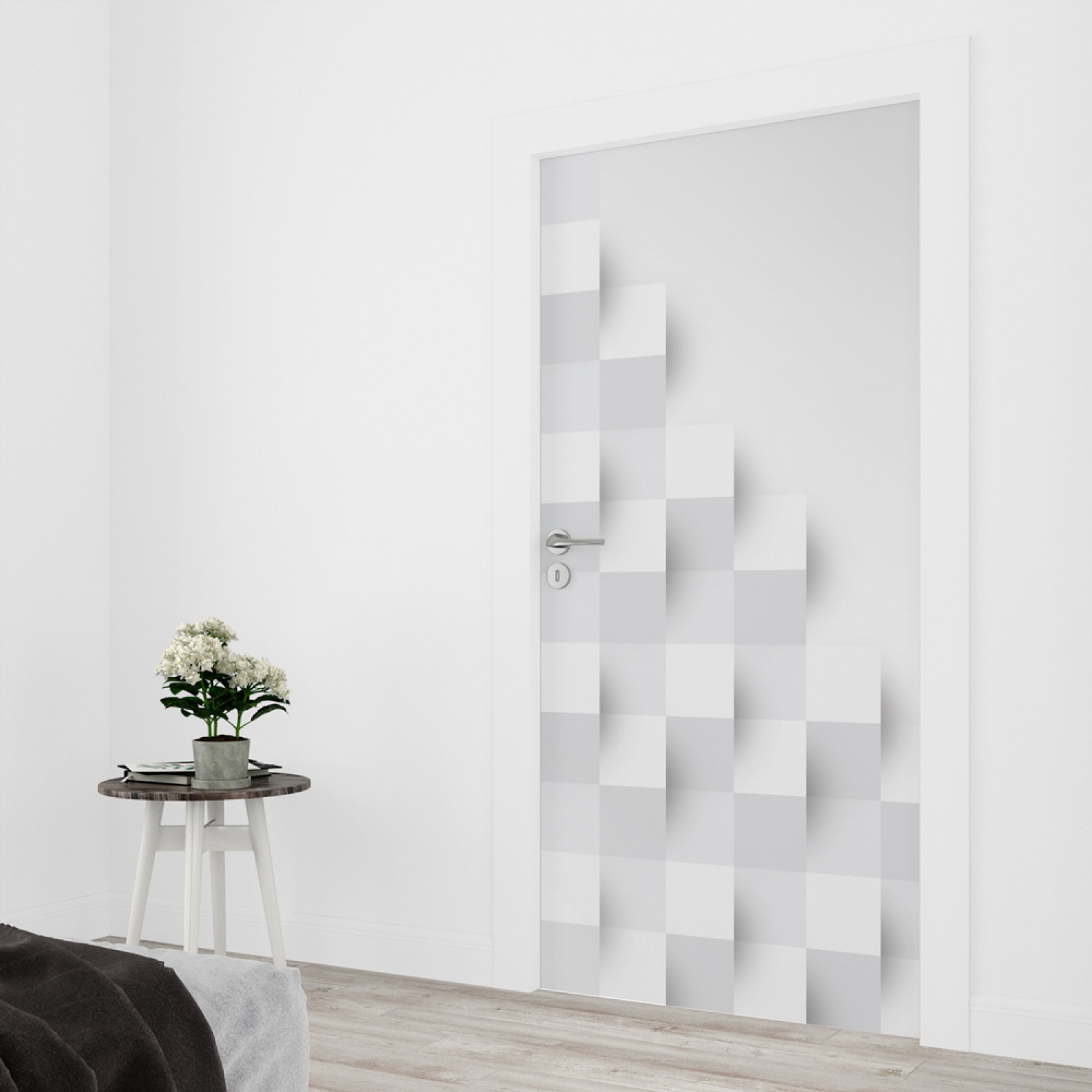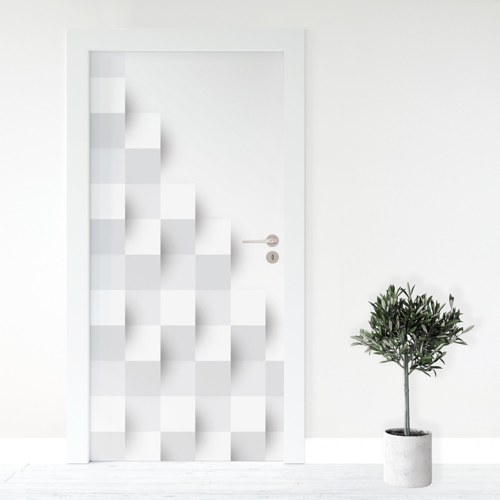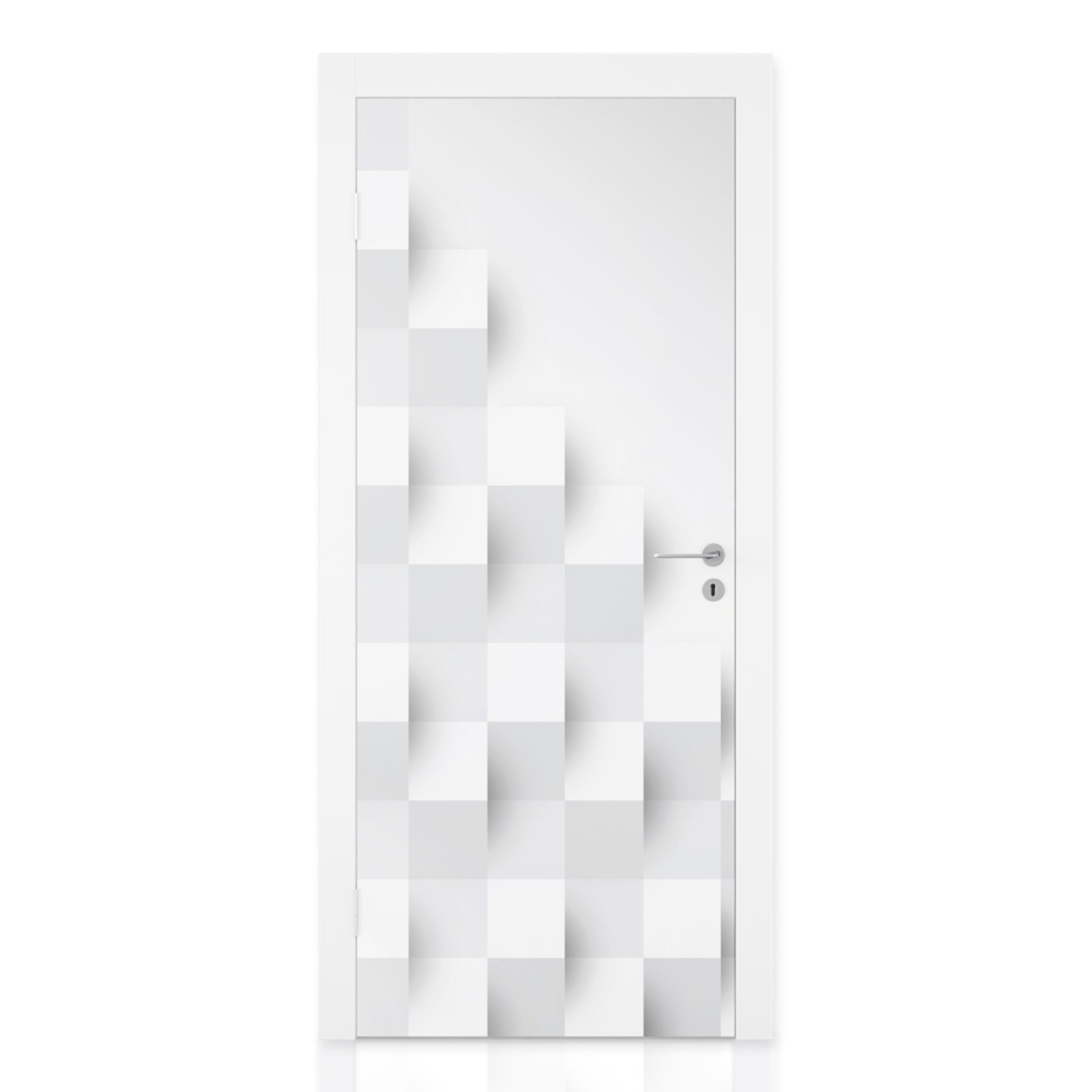Die Türfolie Blöcke beeindruckt mit einem modernen 3D-Effekt, der eine faszinierende Tiefenwirkung erzeugt. Das klare Muster aus geometrischen Blöcken verleiht der Tür eine elegante, minimalistische Optik und sorgt für ein stilvolles Ambiente in jedem Raum.