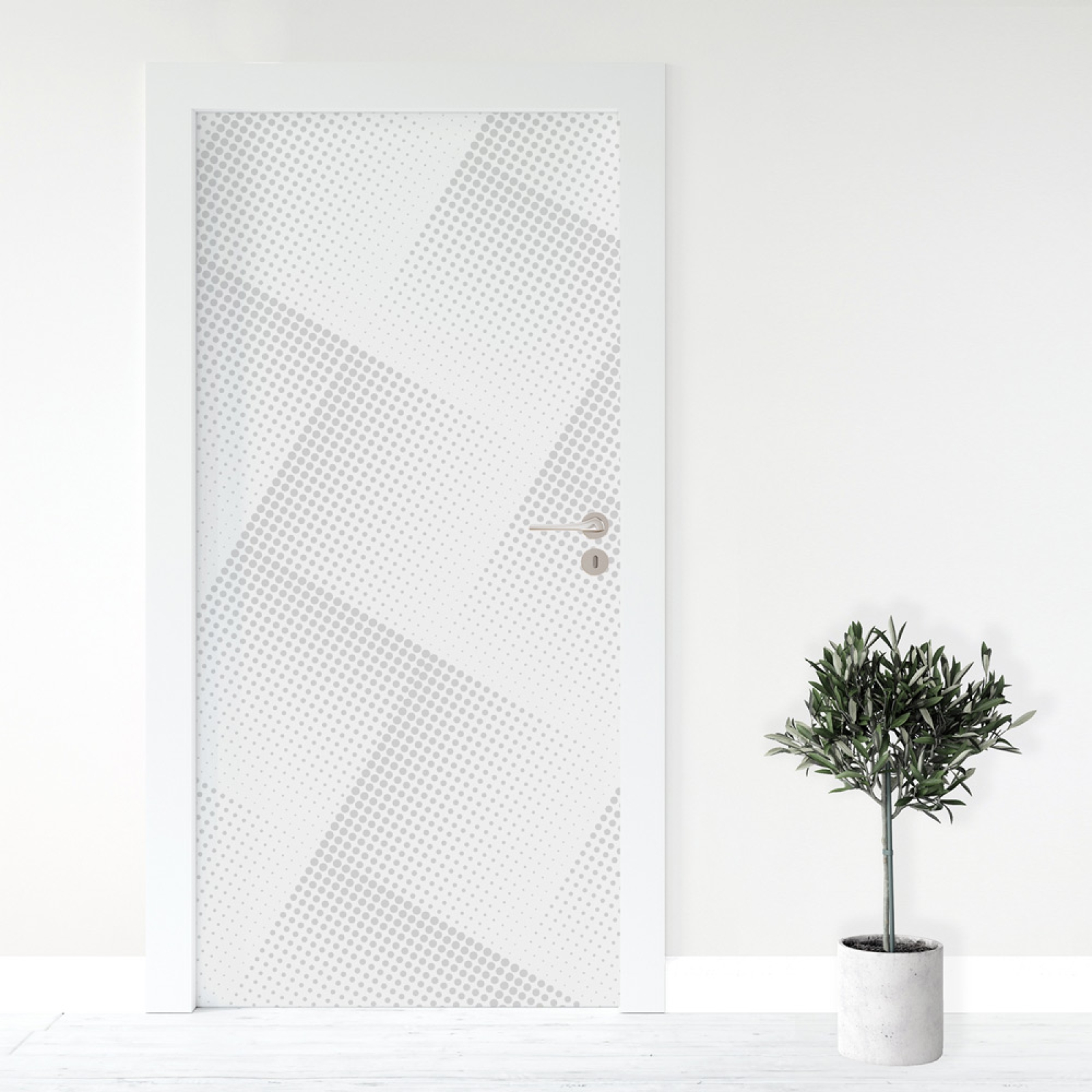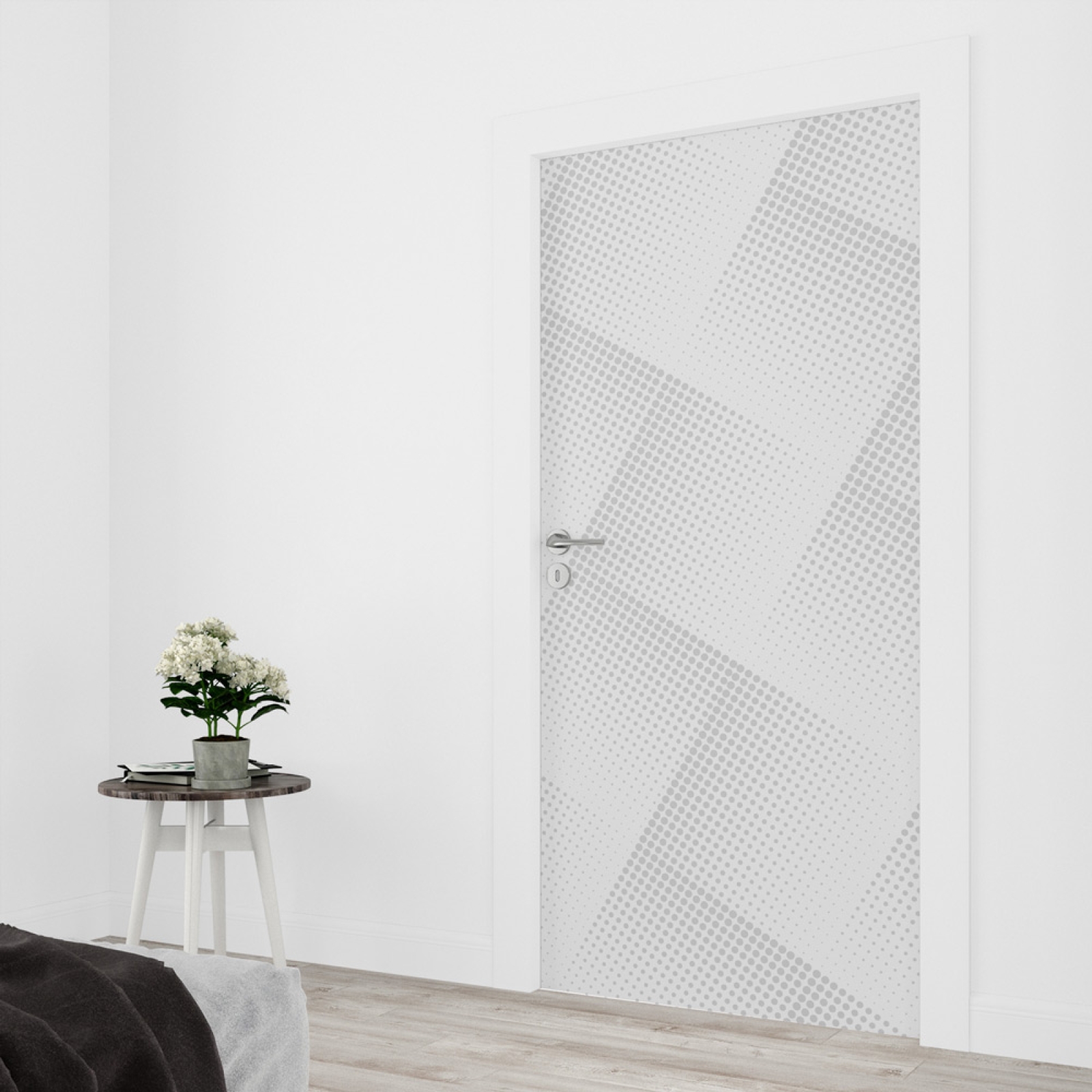 Türfolie diagonale Rechtecke – ein modernes Design für stilvolle Raumgestaltung. Die geometrischen Muster in sanften Grautönen verleihen jeder Tür einen eleganten, zeitlosen Look. Mit ihrem minimalistischen Stil passt diese selbstklebende Türtapete perfekt zu modernen und klassischen Einrichtungsstilen und setzt stilvolle Akzente in Wohnräumen, Büros oder Hotels.