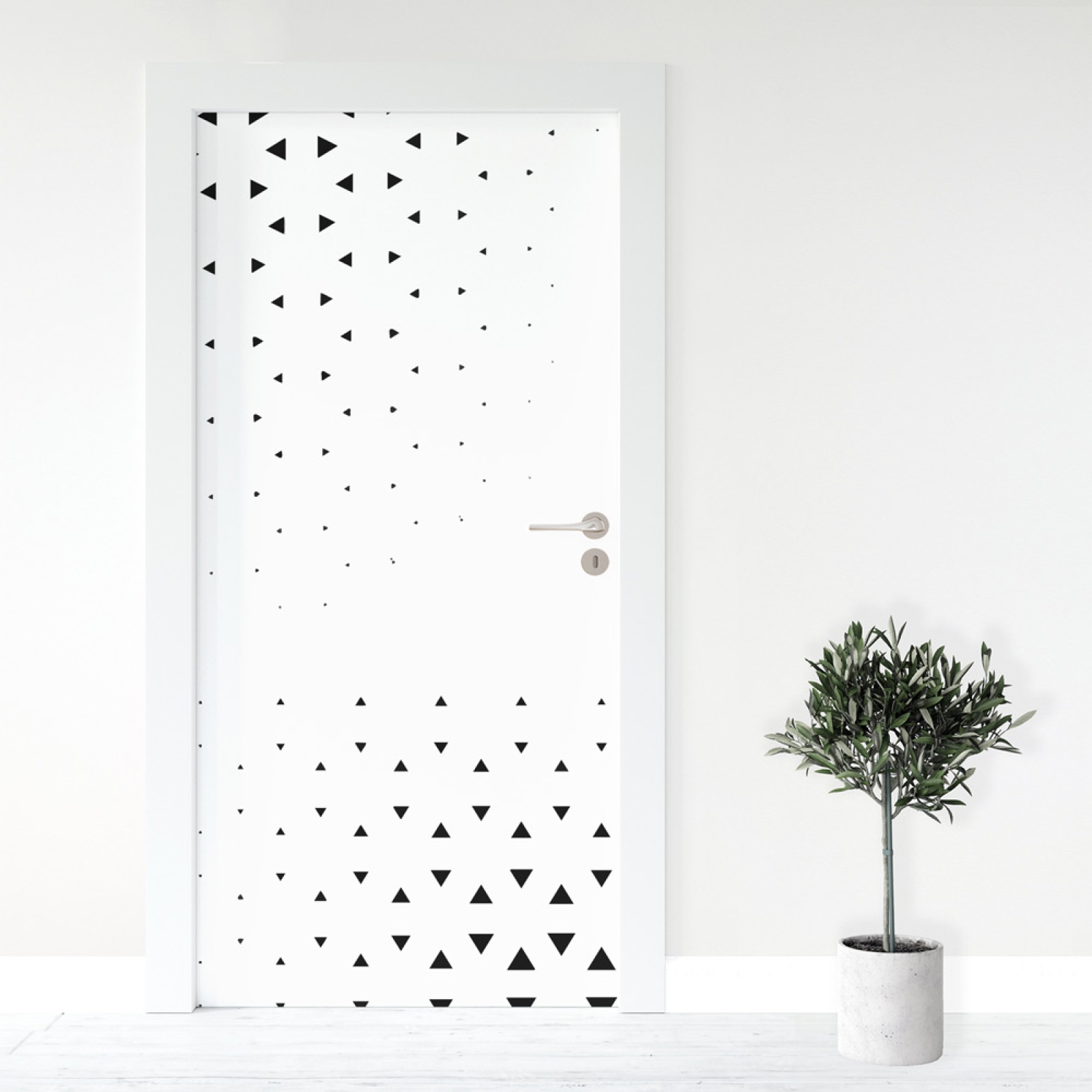 Setzen Sie mit der Türfolie kleine Dreiecke ein modernes Design-Statement! Das raffinierte Muster aus kleinen Dreiecken verläuft in einem harmonischen Übergang und schafft eine dezente, aber wirkungsvolle Optik. Diese geometrische Eleganz passt perfekt zu modernen Wohnstilen und sorgt für ein stilvolles Ambiente.