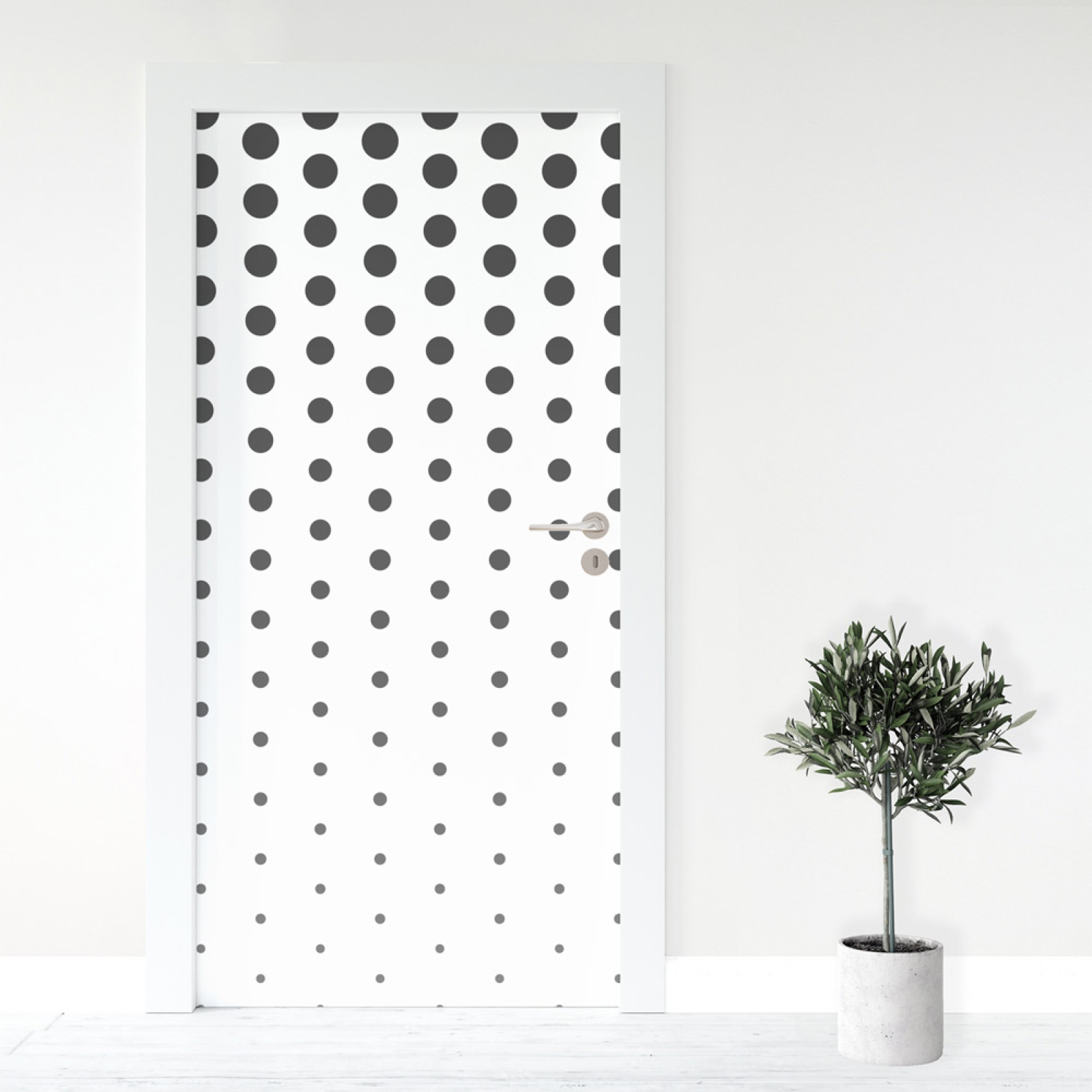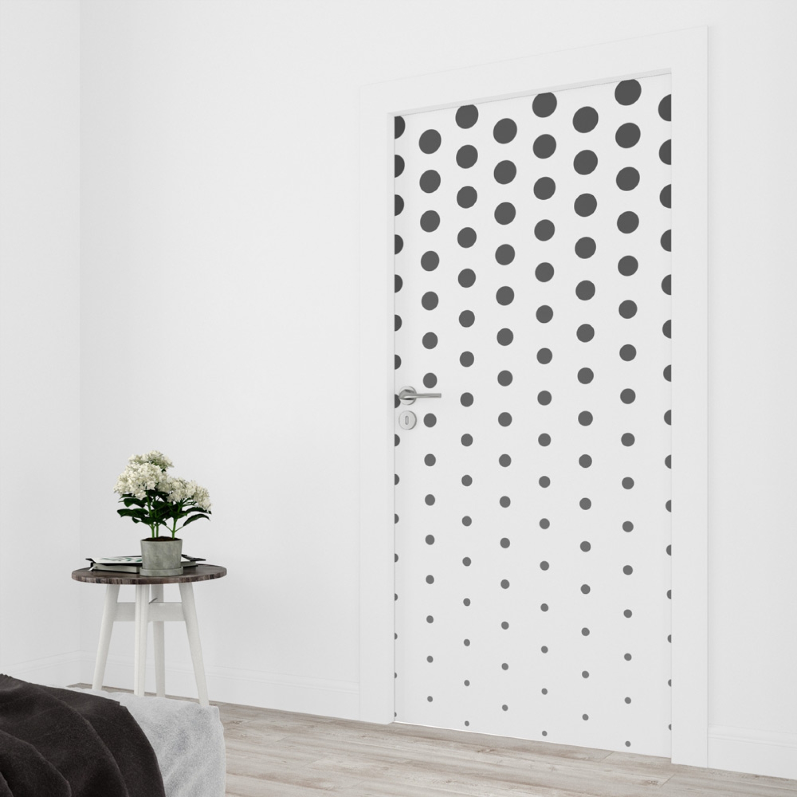 Mit der Türfolie getupfte Punkte entsteht ein modernes und stilvolles Ambiente in jedem Raum. Das gleichmäßige Punktemuster schafft eine harmonische Balance zwischen Struktur und Leichtigkeit, während der sanfte Verlauf für eine interessante Tiefenwirkung sorgt. Perfekt für minimalistische, skandinavische oder moderne Einrichtungsstile.