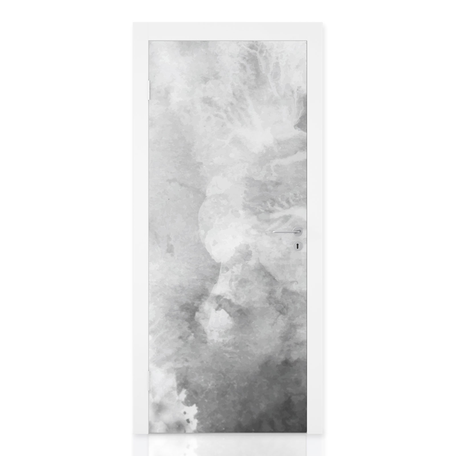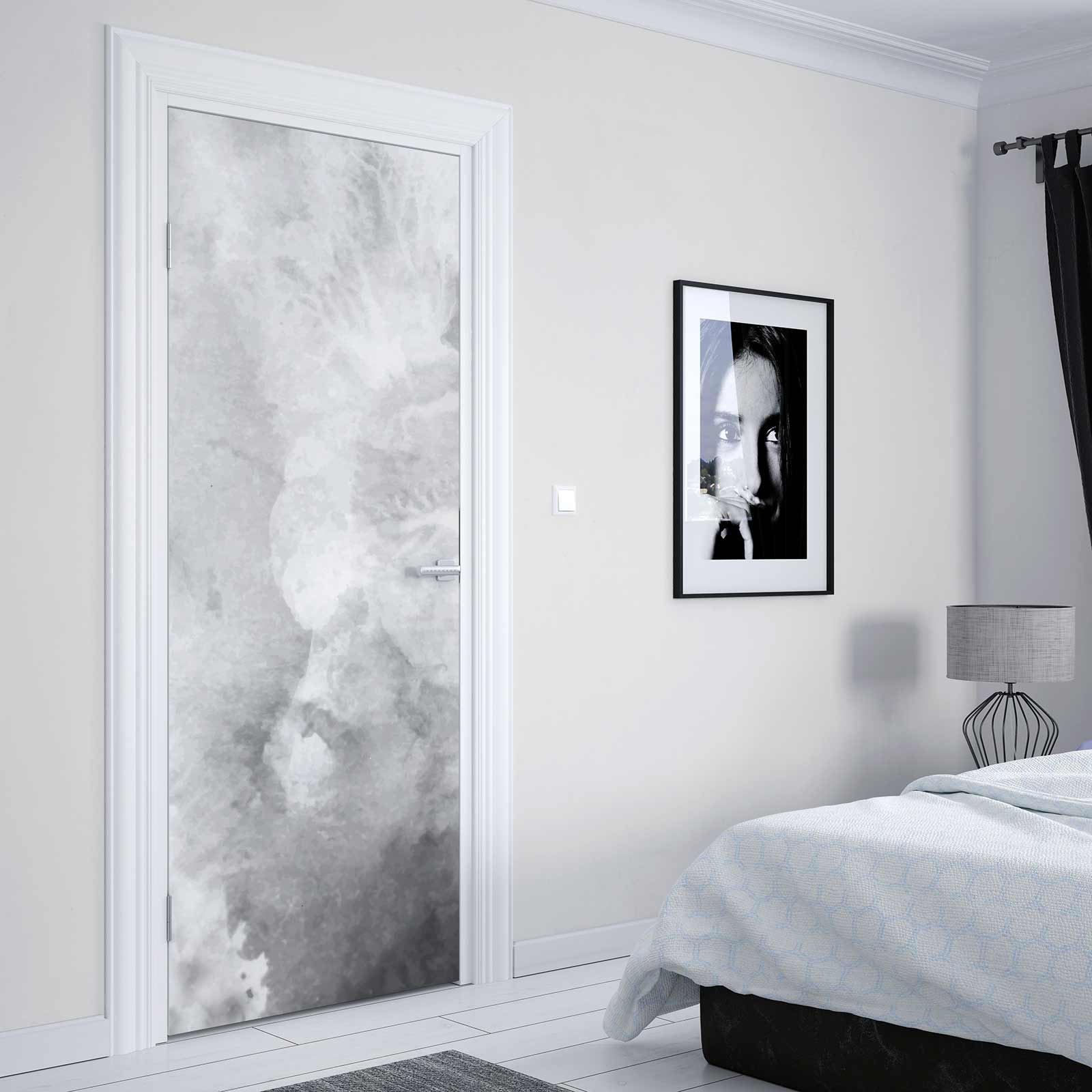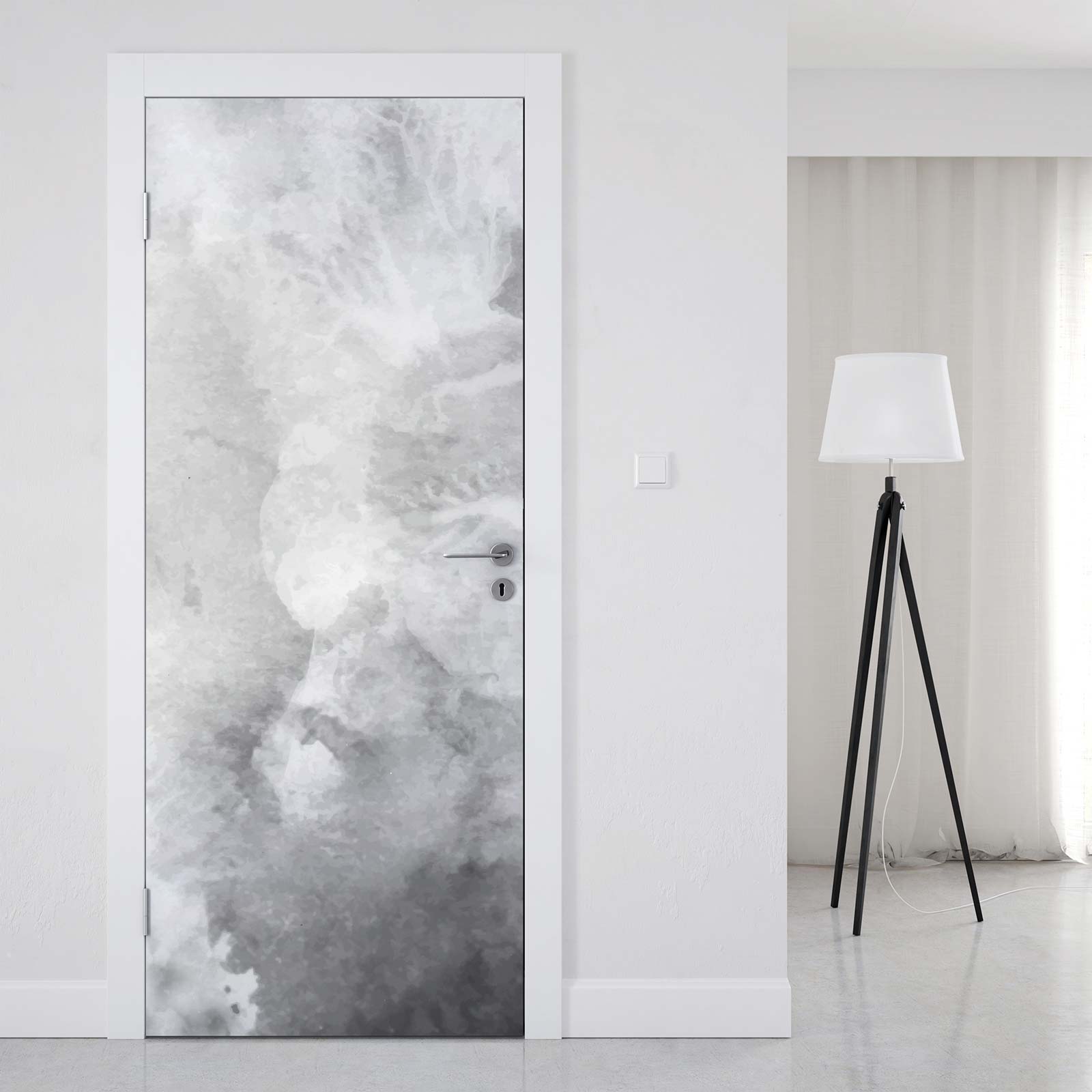 Tauchen Sie Ihre Räume in eine geheimnisvolle Eleganz mit der Türfolie in Grau mit marmorierter Nebeloptik. Das abstrakte Design in grauer Nebelstruktur erinnert an fein marmorierte Flächen und verleiht Ihrer Tür eine ruhige, edle Ausstrahlung mit künstlerischem Flair.