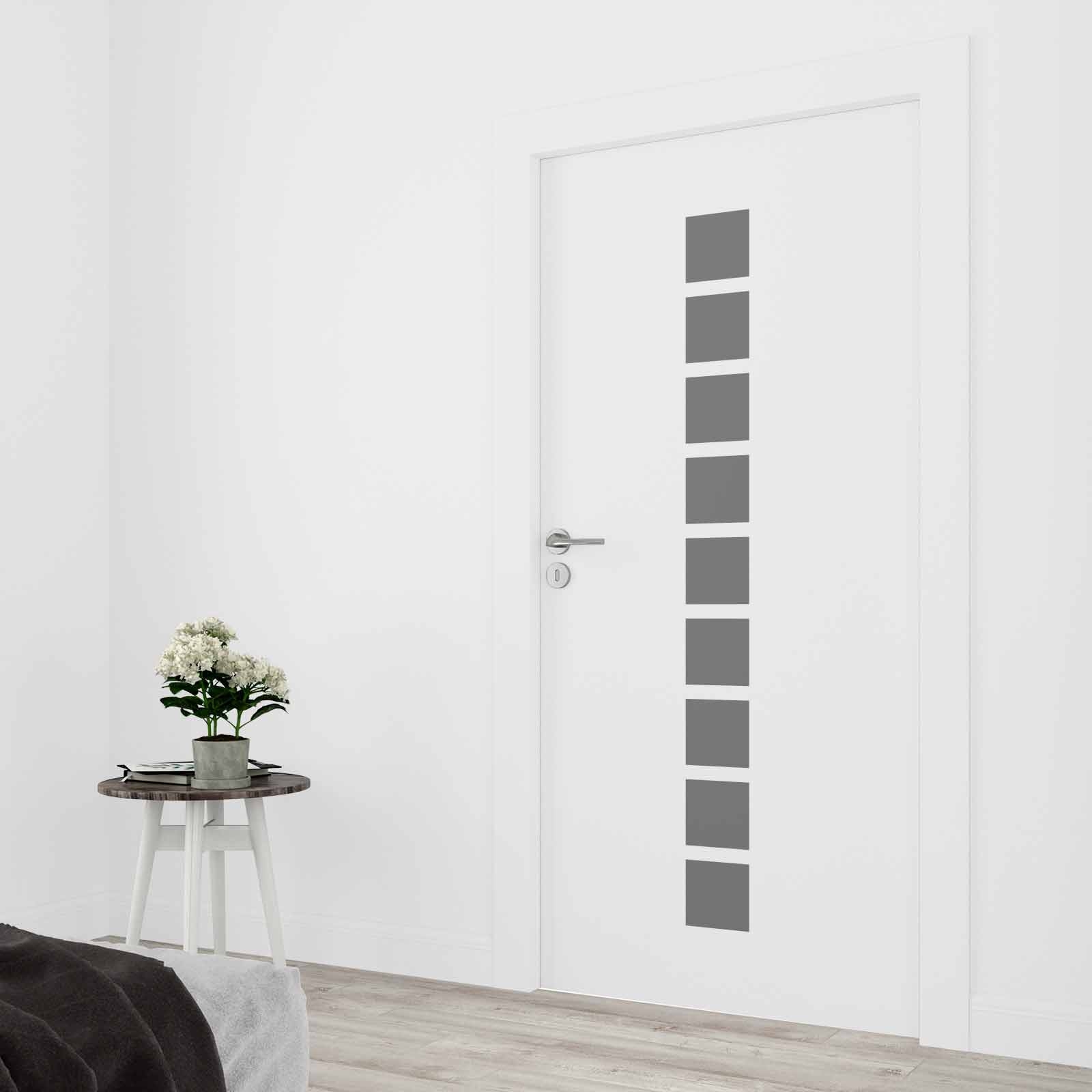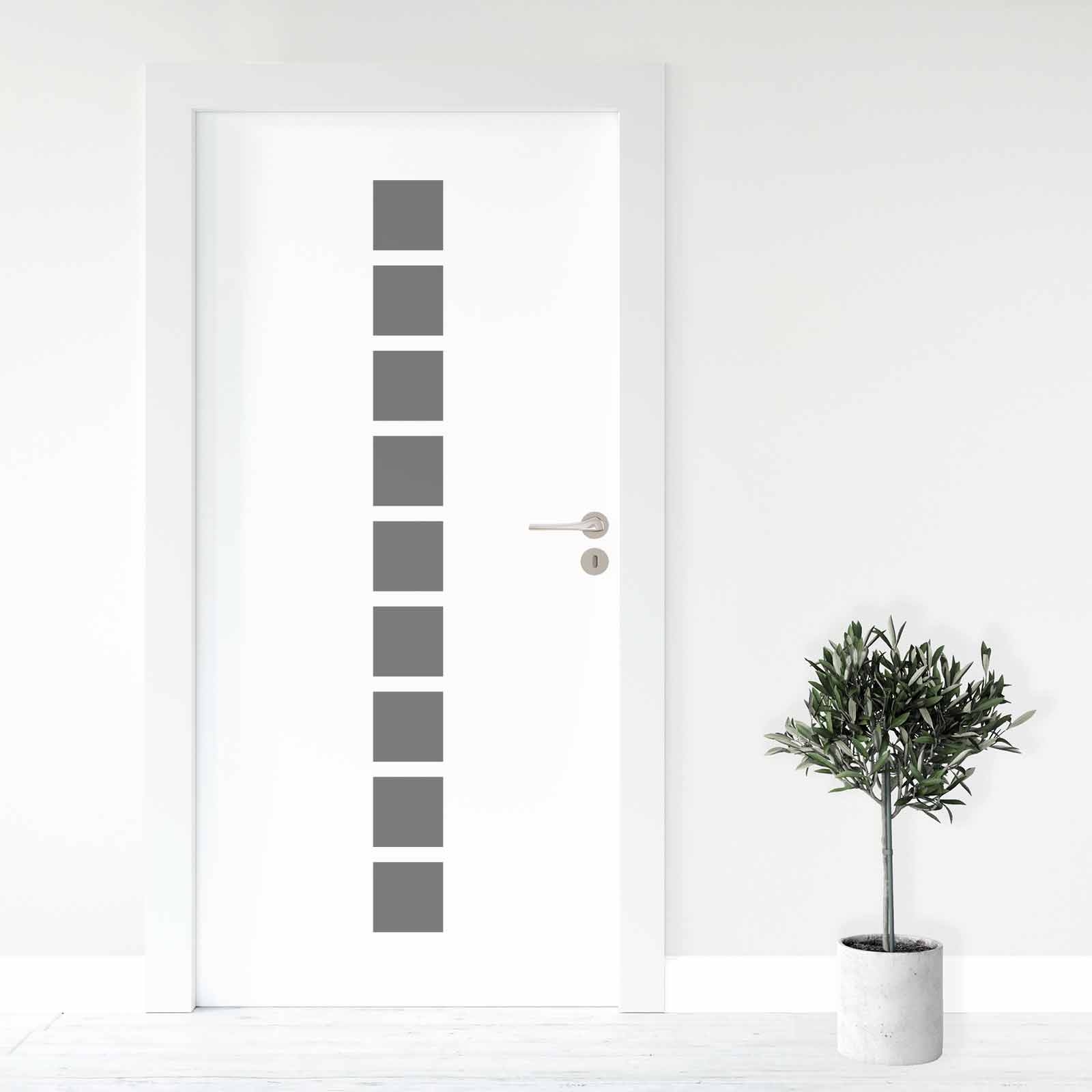 Zeitlos, stilvoll und minimalistisch – die Türfolie graue Kachel setzt auf eine klare, strukturierte Optik mit vertikal angeordneten grauen Quadraten. Das schlichte, aber ausdrucksstarke Design sorgt für eine moderne Ästhetik und passt perfekt zu zeitgemäßen Wohn- oder Arbeitsräumen.