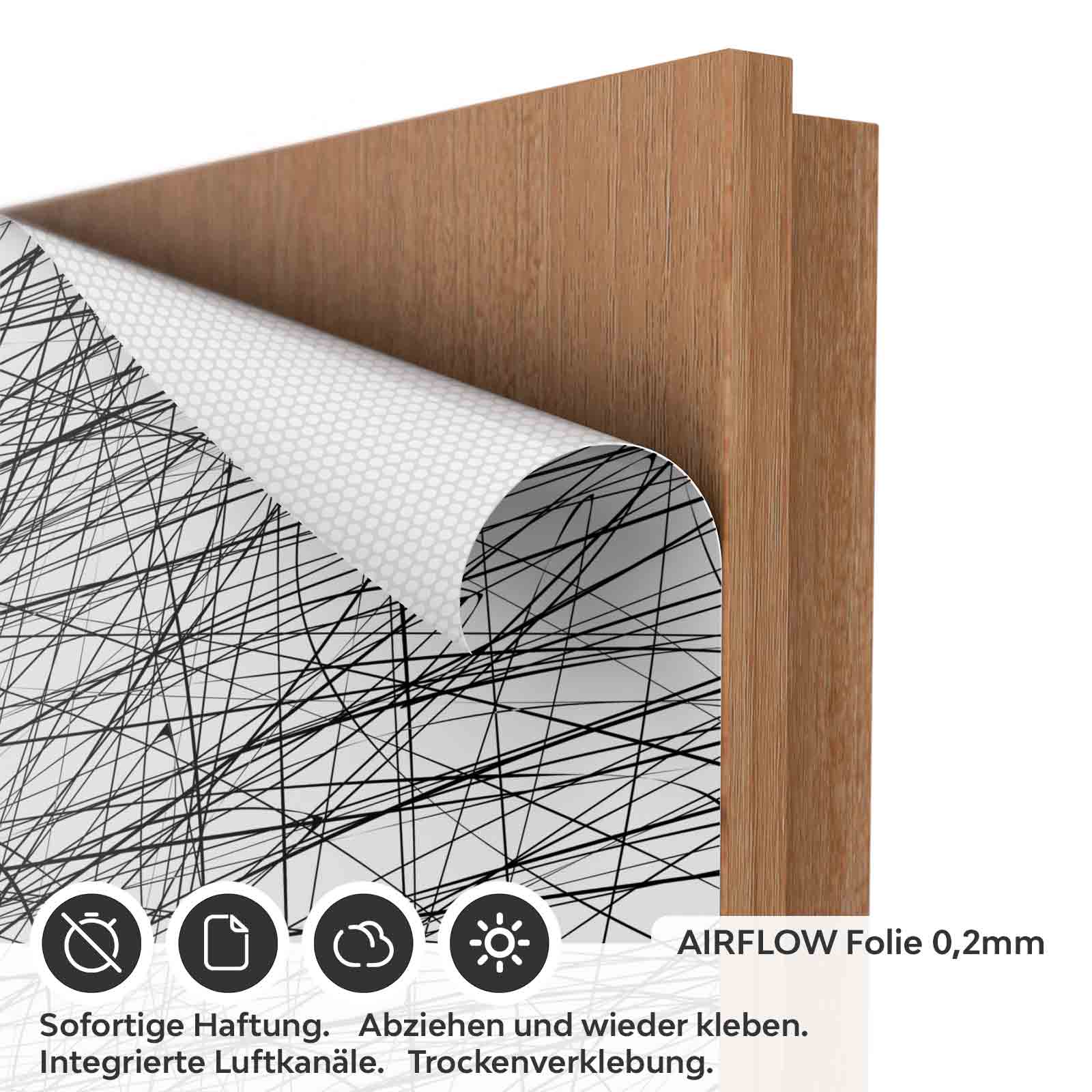 Als selbstklebende Türtapete lässt sie sich individuell zuschneiden, leicht anbringen und rückstandslos entfernen – perfekt auch für Mietwohnungen.