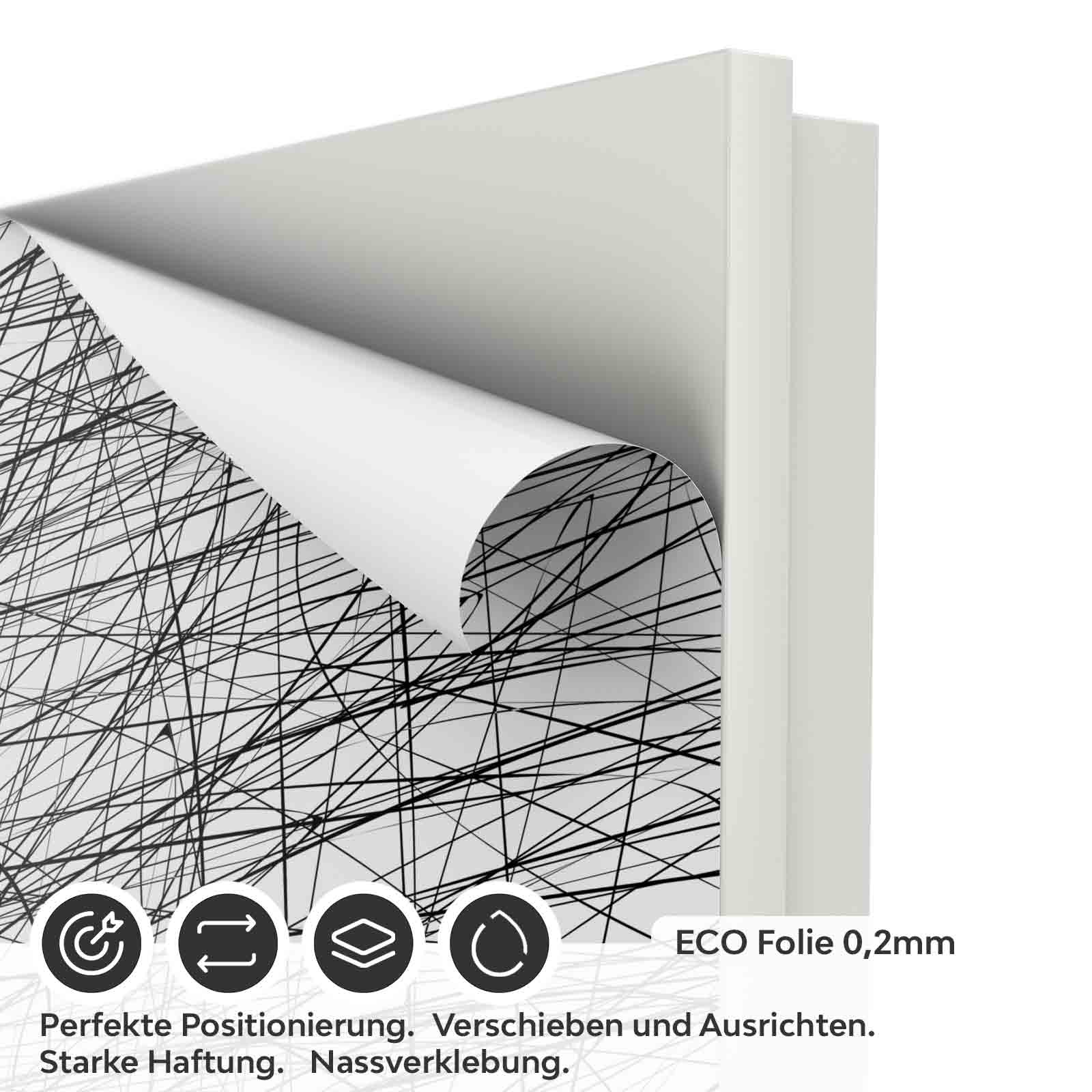 Die Türfolie ist nicht nur optisch spannend, sondern überzeugt auch durch Funktionalität: Sie ist wasserabweisend, hitzebeständig, kratzfest und einfach zu reinigen – ideal auch für Küche, Bad oder Eingangsbereiche geeignet.