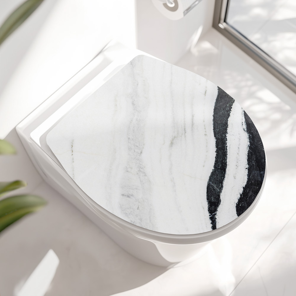 WC-Deckel Aufkleber Marmoroptik weiß schwarz